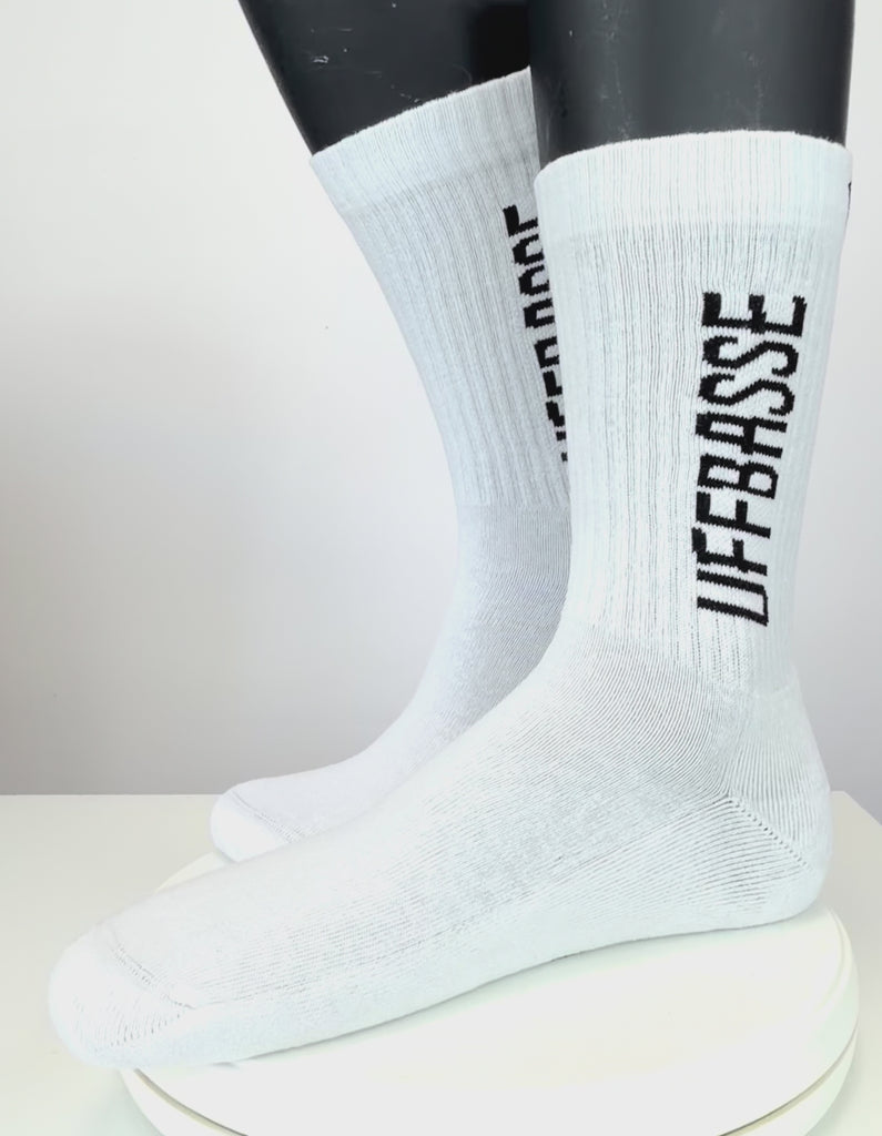 NEU! Unsere "coole Pälzer Socke" im Tennis-Socken-Style, tragbar für Damen oder Herren und jeden Anlass mit unserem ikonischen "UFFBASSE" Schriftzug swie 2 Dubbegläser auf der Rückseite. Im Set enthalten sind gleich 2 (!) Paar Socken.